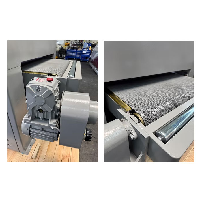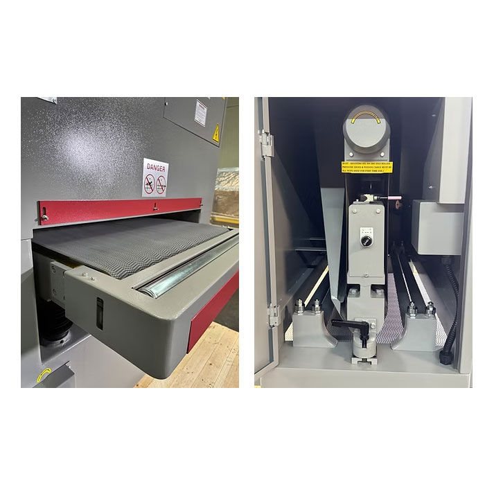 - Dust collection hood with 4” outlet is located adjacent to abrasive head in sanding area