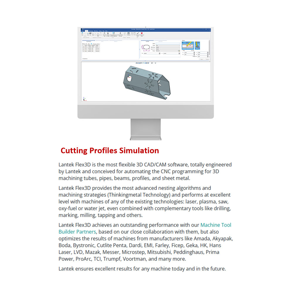 - Lantek Flex3D SteelWork is a new module in the Lantek Flex3D product family, specifically designed for the design and machining of standard profiles. It is a stand-alone product that does not require any additional Lantek software. With over 20 years of experience in the sheet metal market, Lantek has created a powerful offline design and programming system for profile cutting machines, supporting both sawing and drilling operations.