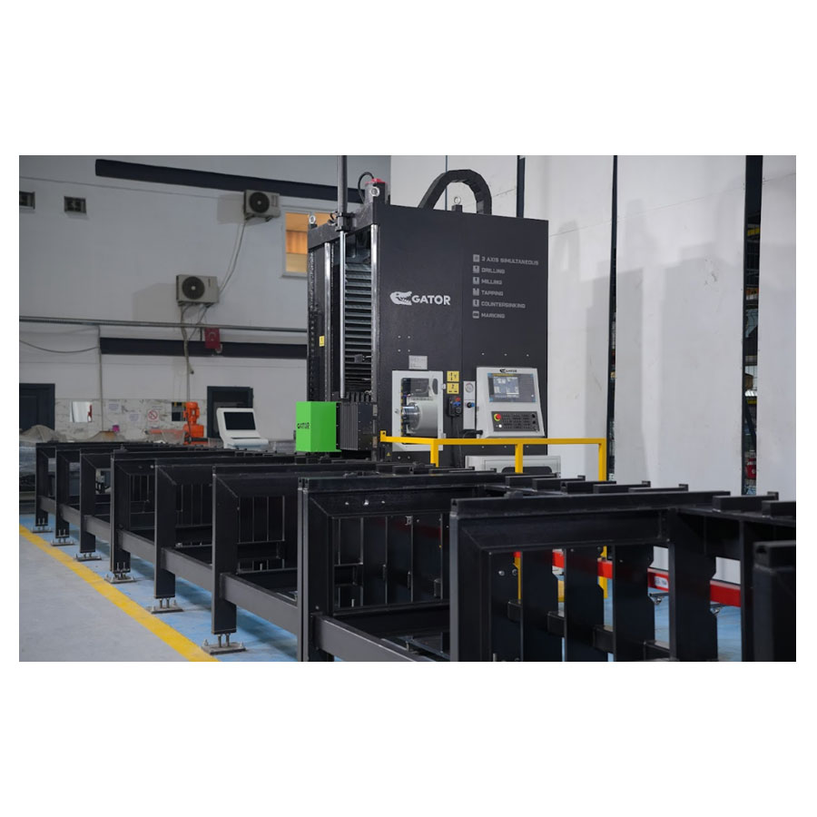 The machine features independent measurement systems that automatically measure the material’s length, width, and height. The operator inputs the material type and dimensions into the program, and the software determines how many points the material height measurement will be performed.- Flanges and web heights are measured automatically with a measurement probe.
